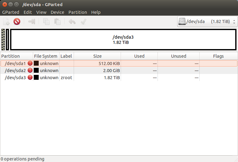 I run on ubuntu from USB flash drive on the same system and got this from gparted: