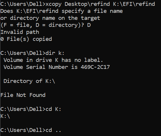 But I fail at 12:00 where I'm suppose to copy refind to the EFI used in Windows.