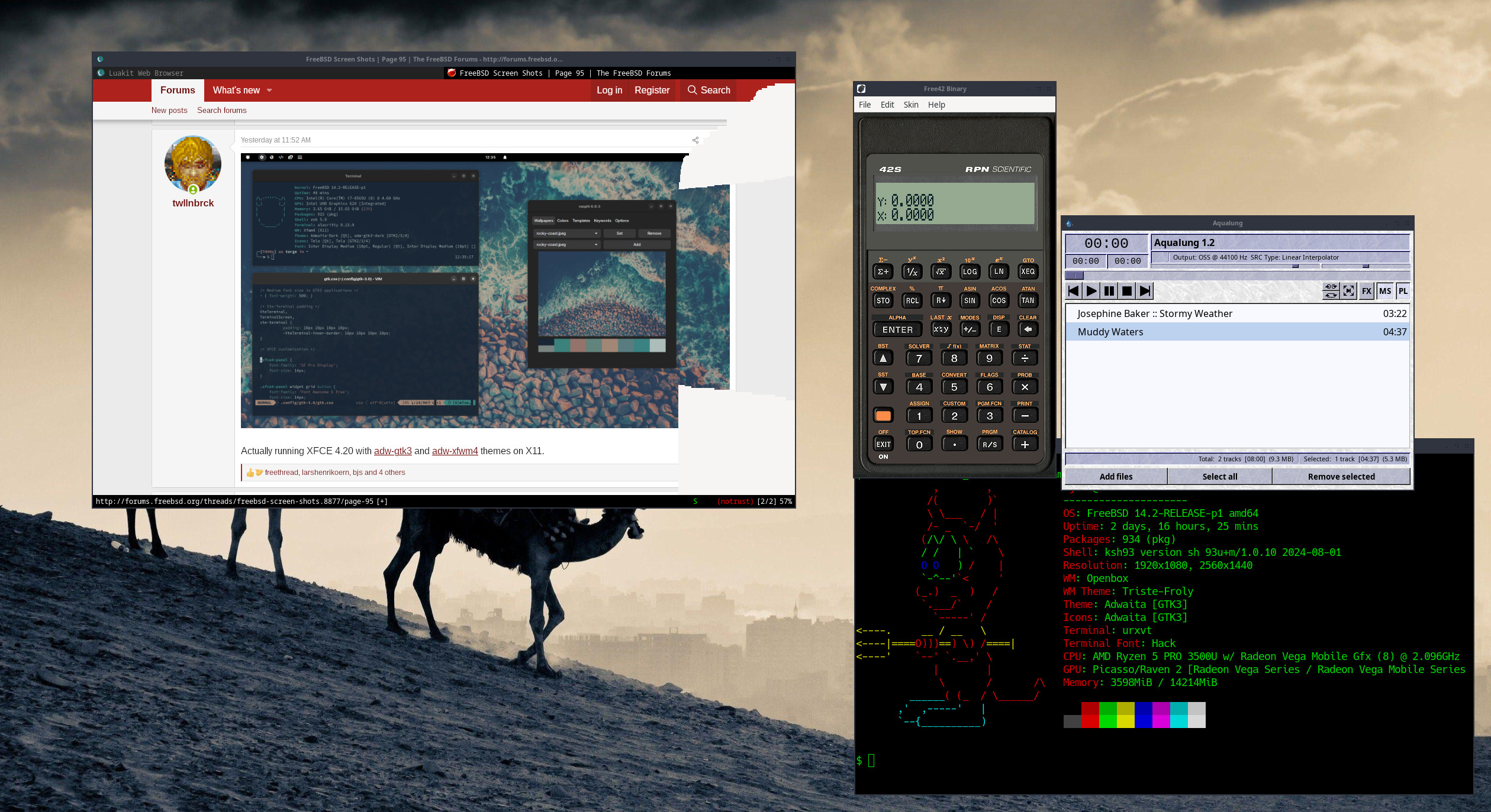 That's the kind of screenschot I am interested in. I don't care about the 127th color variation of a commonly used DE, mostly presenting wallpapers...