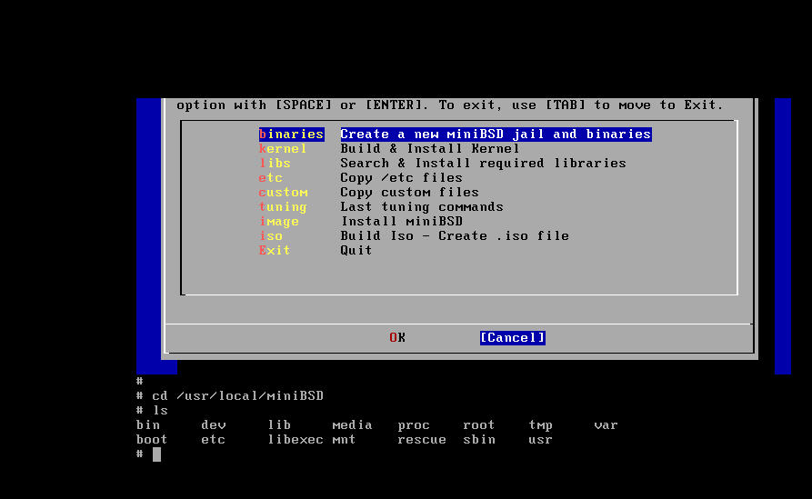 could you please guide me to an trusted article or book because i can not find any organized book or article that speaks about how to create customized MiniBSD system . i attached a snapshot of the main selection window .