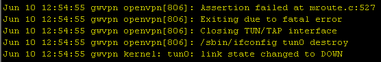 openvpn --dev tun --port 9999 --verb 4 --ping-restart 10 --up